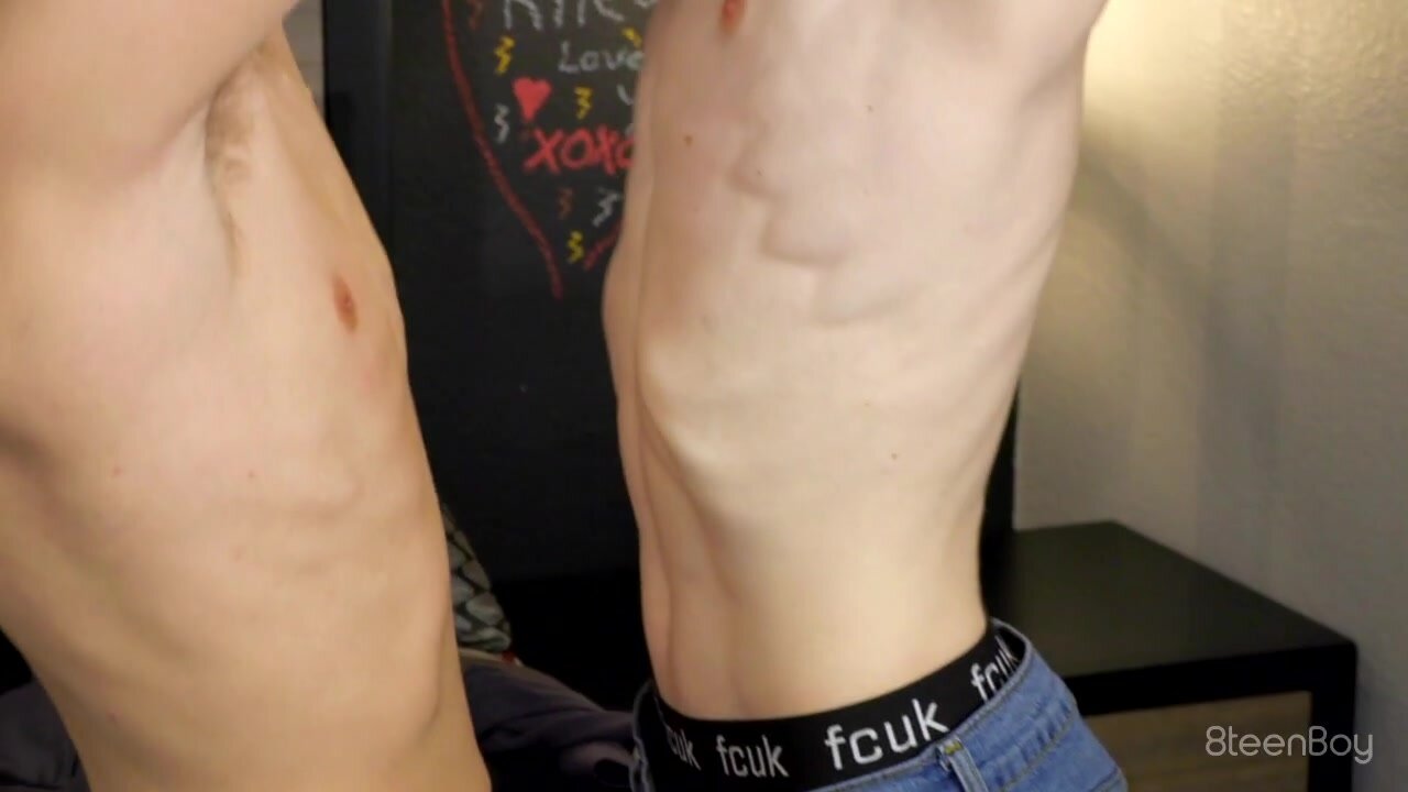 With a shredded body, and and erotic anticipation, Jimmy Andrews tears into hot piece, Jacob Hansen. The horned up dirty blond strips the young stud, as he tastes his tight, tan torso, and moves towards that dick. Andrews wastes no time once reaching his meaty mark, spending equal time deep throating, and sucking seed filled his sack, while that thick dick knocks around his handsome face. The skilled schlong sucker stands, strips from his stuffed black boxer briefs, and allows his impressive appendage to flop out with weighty heft. He eases into the bed, then dangles all that delicious dick down Jacob’s thirsty throat. Hansen throats his huge hog while Andrews pinches the boy’s nipples. Confident with the cock sucking, Jacob asks for an ass eating, and receives it in spades. Andrews buries his tongue deep in the twink’s trench, then pulls his prime piece of meat through his legs and goes to work on that as well. With Hansen’s hot spots spit slick and ready, Jimmy jams his juicy giant deep into Hansen’s hot, little hole. The sinewy stud slams the boy on all fours before Hansen takes a raw ride, bouncing his big beast right at the camera. Our boy nearly nuts, but is anxious to test out Andrews’ incredible ass. So, he calms his cock, then slips behind the tattooed twink, and tears into that tight tail! Hansen goes full erotic-aggression, choking the dude, and sucking him DOWN, till his dick spits white hot heat all over his shredded six pack! Hansen rages onward, ramming with raunchy, raw rage till he coats Jimmy’s crotch with fresh cum.