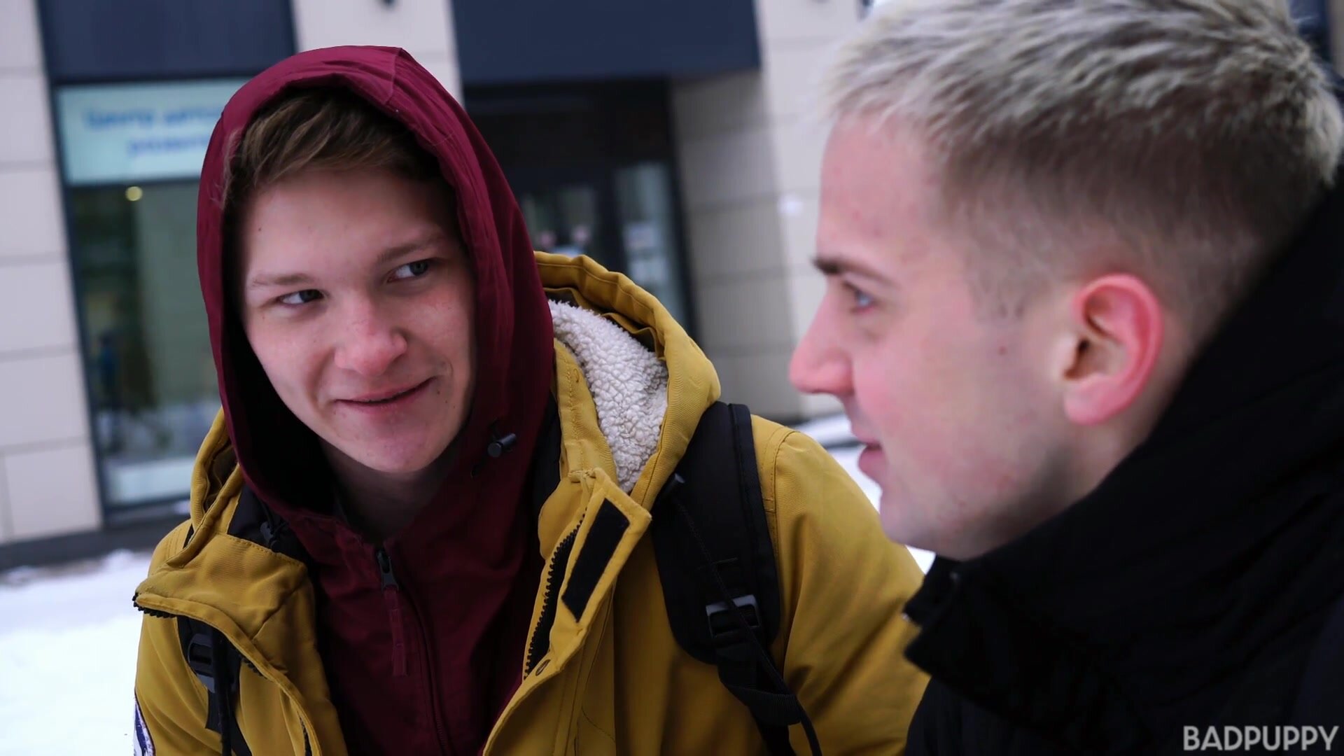 Taylor Blaze and Gera Rihter heat things up after walking home in the cold snow. They both head for the bed where the fondling and kissing begins. Taylor helps Gera out of his sweater and t-shirt before standing up on the bed. Gera starts nuzzling at Taylor's crotch as he reaches to unzip Taylor's jeans then pulls them down around his knees. Gera grabs ahold of the growing bulge in Taylor's underwear and quickly frees Taylor's engorged cock. Gera swallows up every last inch as he works its length in and out of his mouth, teasing it with his tongue. Taylor kneels down on the bed and reaches to unzip Gera's jeans. Gera's cock is straining to be free and as it springs straight up, Taylor woofs the whole thing down his throat. Gera spins around on the bed and points his ass in Taylor's direction. Taylor licks his fingers and as he spreads Gera's ass, he slowly inserts his fingers deep into Gera's tight hole. Taylor lubes up his own thick cock and mounts Gera from behind. Taylor slides his cock all the way in and immediately starts power-fucking Gera. The ass pounding continues for quite some time and then Gera rolls over on his back. He pulls his legs back and starts stroking his cock as Taylor continues plowing his ass. Wanting even more, Gera has Taylor lay down on the bed and he mounts Taylor's cock. He uses his ass muscles to work Taylor into a frenzy and almost has him cumming in his ass; but Taylor pulls out. Taylor stands up beside Gera and blows a thick, juicy load of cum all over Gera's face and mouth. Gera licks up what he can of Taylor's creamy jizz while the stroking of his own cock is about to pay off. He lets go, squirting all over his own abs and chest. The white cum glistens as it slowly drips down his tummy.