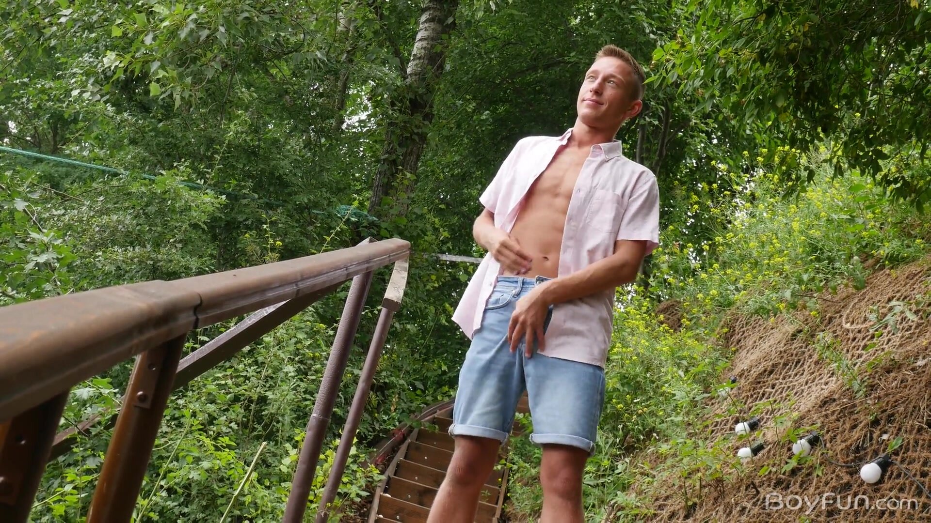 Noah is prepared, his assless briefs framing his peachy rump as he turns around to welcome his new friend's rigid cock deep inside. Luke pumps him full of his naked dick and fucks him right there in the open before the two head inside.