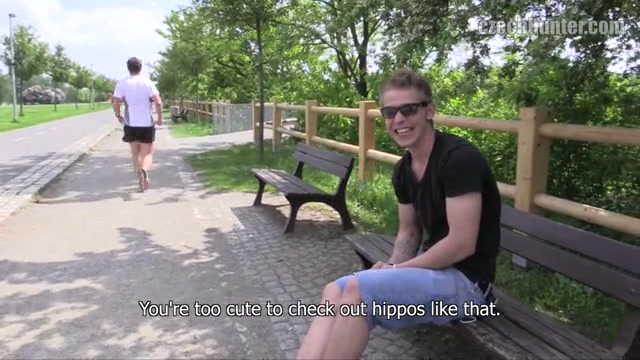 Description: I had to take care not to get hit by one of those reckless rollerblading guys. Several of them would have fit my fantasies today… but they just all went too fast Finally I spotted the perfect catch. A young guy with blond hair. Well-built and – as I found out – working part-time in a call center as a sales agent. His job sounds not too spectacular, I know. But as it wasn’t well-paid I decided to take the risk. His looks turned me on so much… I had to try it. And after a whole while I talked him into comparing our dicks. A few minutes and a few thousand Crowns later he had my dick in his mouth. But how far would he go? Would he allow me to pop his cherry as well? I was up to fuck a rollerblading callcenter-guy’s ass today…