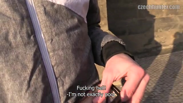 Another freezing morning in Prague. I tried my luck at a subway station to hide from the cold. There I met Mira and Eliska, a young couple on their way home. They were very cool and wanted to play with me. Eliska was a bit jealous so she just showed me her boyfriend’s cock. She was too scared to let Mira with me alone, I guess. Well, it wasn’t that hard to find another new friend for the day. His name was Michal and he came to Prague to get wasted. His own words. That was the guy I was looking for! He wanted to do some serious clubbing over the weekend. That can be very expensive. I was ready to improve his budget, he just had to play along. And he did. He cursed and moaned a lot while my cock was stretching his tiny ass out.