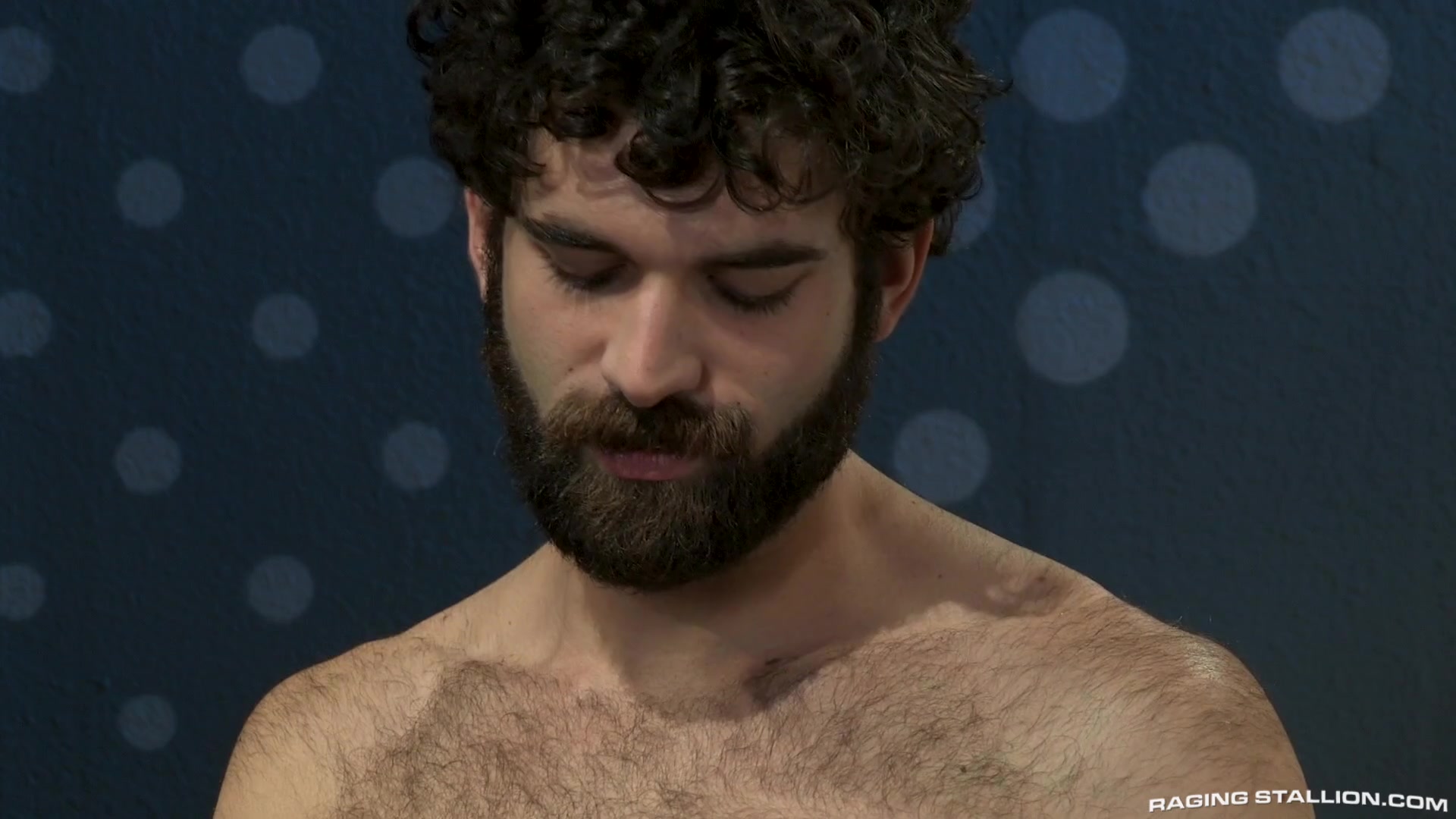 Tegan Zayne's hard cock is ready for action when he tells Spencer Whitman to 'get down there'. Spencer does as he's told and gets down in front of the hairy hunk with his mouth opened wide. Tegan grabs Spencer's head and fucks his face, commanding him to take it deeper and to suck his balls. 'Faster!' Tegan yells out, making sure the horny stud sucks it just the way he likes it. Tegan is hard as a rock and needs to feel Spencer down his throat. Spencer is happy to oblige Tegan's needs and sits back to offer up his giant cock and big hairy balls. Tegan is so cock-hungry that he can hardly contain himself as he slobbers and chokes on Spencer's fully erect pole. Tegan is like a sucking machine, taking it deep down his throat as ropes of spit trail down Spencer's thick shaft and drip off his sack and onto the floor. Spencer's fuzzy crotch is a slobbery mess of Tegan's cock sucking expertise and using Tegan's mess as lube, he jacks his rod until he drops his load in Tegan's thick, bushy beard. Tegan has done his job well and when he gets a taste of the hung stud's jizz, he stands up and gives himself permission to let loose. Tegan sprays a geyser, shooting up into the air and slathering Spencer's face with a massive pent-up load that the two eat up with a kiss.