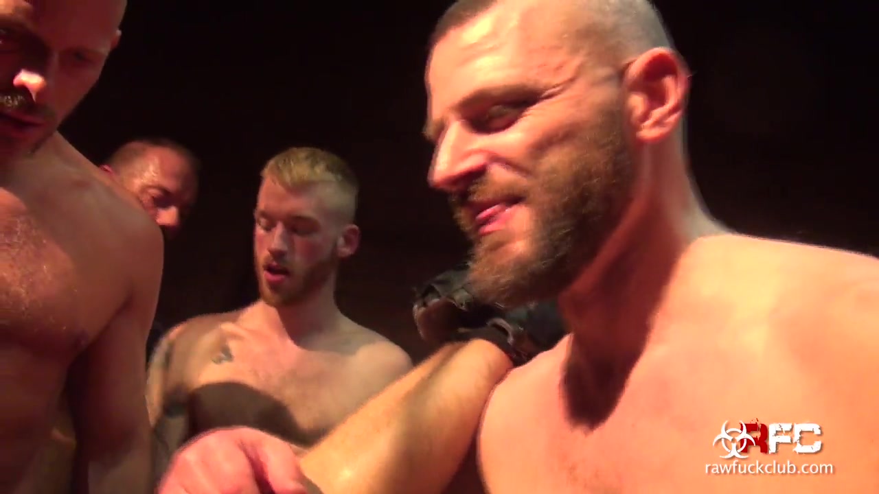 Seth Santoro's ten-man gang bang rages on as the insatiable bottom pushes himself to higher levels of pigginess. After being spit roasted, double penetrated, and taking load after load of cum down his throat, and in his wrecked hole, the fuck crazed bottom unleashes a huge load of cum while the tops hose him down with their hot piss - Jon Galt, Scott DeMarco, Jake Morgan, Clay Towers, Vic Rocco, Jack Andy, Seth Santoro, Sean Duran, Jace Chambers, Declan Moore