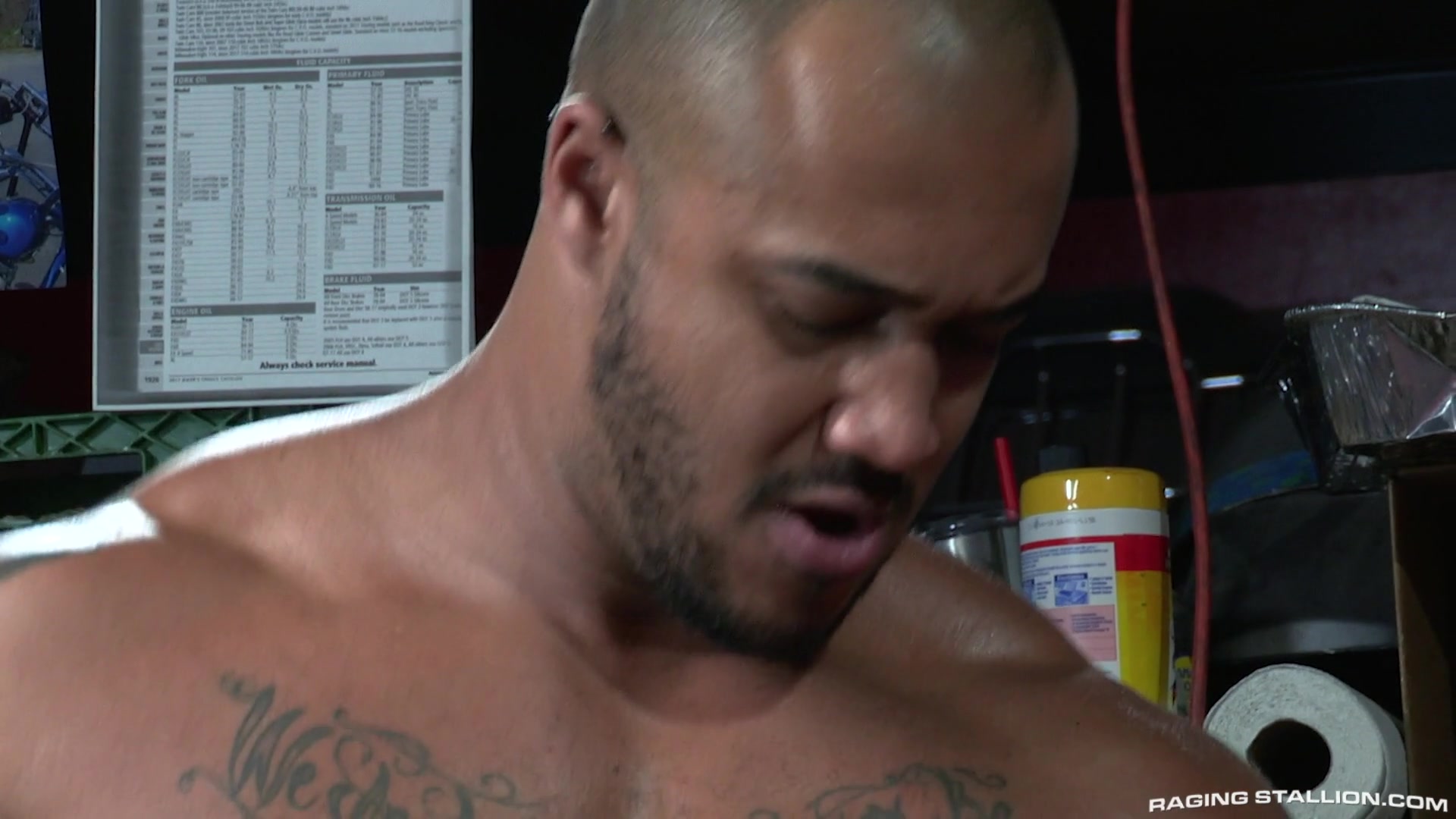 Описание: Ripped and tatted mechanic, Riley Mitchel, gets held up at gunpoint by robbers, Jason Vario and Colby Tucker. When Riley reveals there's no money in the shop, Colby pulls down Riley's pants and discovers that Riley really likes the thrill of being robbed. Colby's mouth begins to water, and he quickly gets on his knees to service Riley's thick curved cock as Jason pulls down his pants to get in on the action. Colby takes his cue and services both hung studs, choking and gagging as he takes both big members down his throat. When Riley can no longer take the anticipation of tasting what the burglars have to offer, he takes his turn on the floor sucking all the cock he can fit in his mouth. Riley wants more from the thugs and offers up his succulent hole for Colby to stuff with his big, raging hard-on. Colby pumps Riley from behind as Riley continues to satisfy his cravings for cock by slurping Jason's uncut meat down all the way to his full sack. After pounding Riley's ass, Colby wants to feel Riley's thick meat deep in him and lies on the floor with his legs spread wide. Riley pumps hard, getting himself to the brink before Jason steps up to take his turn. Riley wants his hole stretched by Jason's big cock too, so he lies back to take it. Jason fucks the cum out of Riley before he pulls out and finishes off at the same time as Colby shoots all over Riley's hungry face. Did Riley successfully avert a robbery or did he just create a whole new set of problems? - Jason Vario, Riley Mitchel, Colby Tucker