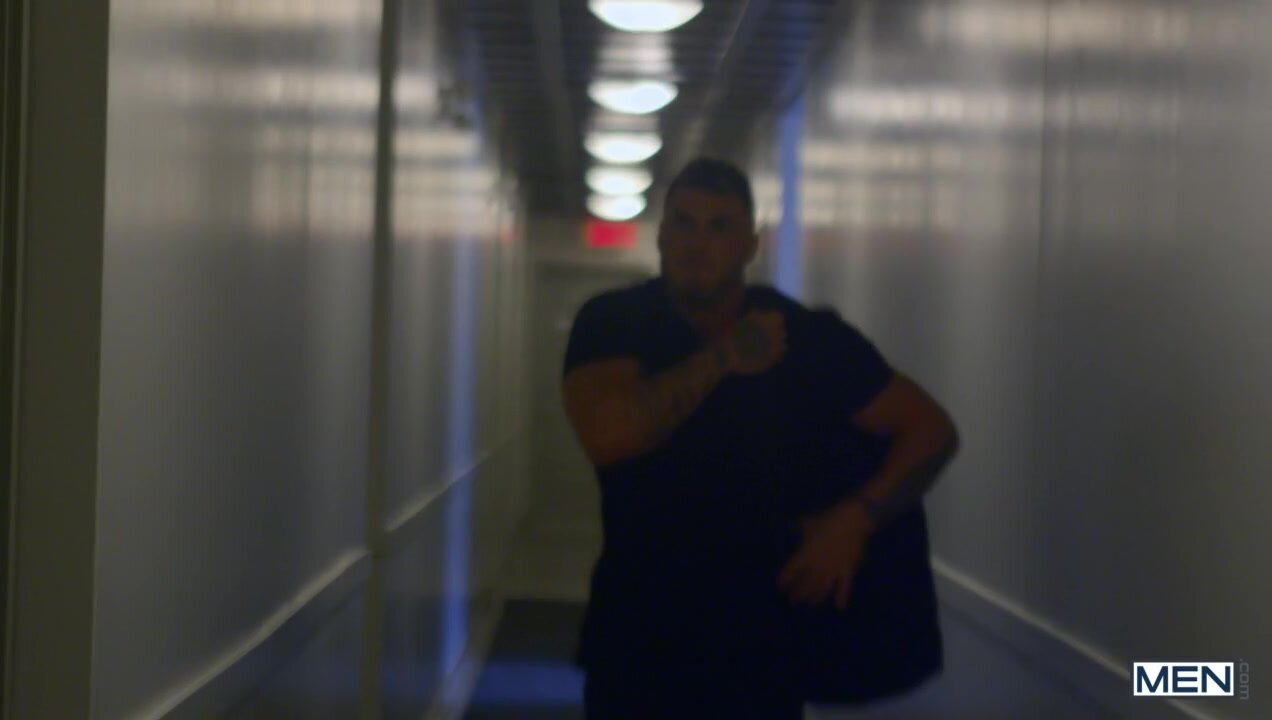 Sexy Michael Boston is feeling a little frisky in his leather jockstrap with matching whip when he’s interrupted by the gorgeous William Seed, asking to use his phone. After a very suspicious phone call, William’s attention is turned to the sounds coming from Michael’s room, only to discover that Michael has the handsome Thyle Knoxx tied up with his mouth tapped in his bed! William tries to sneak out, but Michael catches him and invites him to stay and play, an offer he can’t refuse. Michael sits William on the bed and proceeds to go down on his thick and meaty, uncut cock as a wide-eyed Thyle looks on. His deep-throating skills are so amazing that neither hunk notice Thyle trying to leave the room and stumbling on William’s duffle bag full of cash. Michael then starts riding William’s huge cock every-which-way possible until Michael gets so deep inside him that he cums all over himself, and William blows his load all over Michael’s face and pretty mouth.
