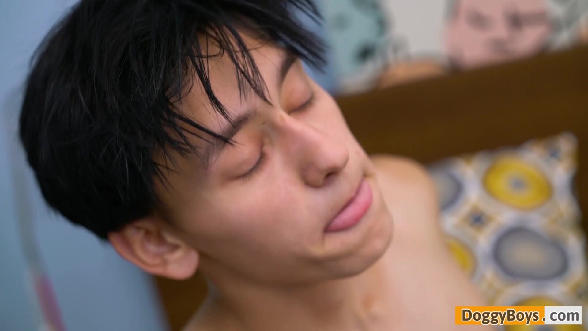 Andreas Nilsen might not look like the type of twinky boy to be interested in a little punishment, but Leo Alfano knows what boys like and he's come equipped with a sexy little paddle to help his friend explore some kinky fun! Within moments the blond boy is making out with his friend, grinding his hips against him, his tight little rump being groped and played with through his sexy little undies. Leo loves the feel of that plump butt, that's obvious when his cock is revealed, long and solid, the swollen tip already damp with precum when hungry young Andreas gets his lips around the tasty tool. The gentle face fucking he takes while he strokes his own boner is an awesome sight, with Leo's long dick easing in and out of his mouth and his big hanging balls swinging, but soon enough he's moving things along and getting a closer look at the blond boy's pale little cheeks, easing his blue underwear down. The spanking twinks start out with a little light thwacking, the sound of the paddle ringing out as Andreas' cheeks become red. It seems the boy likes it, but perhaps not as much as he likes the feel of that long bareback twink cock easing into his pucker. Kneeling on the bed he gets it from behind, loving every thrust, his own dick singing and bouncing as the pleasure rushes through his smooth and slim teen body. His moans of pleasure become more desperate when he's on his side and stroking his dick, being fucked from behind by his adorable little friend's big dick. Finally on his back and ready to spew cream Andreas launches his hot and sticky goo out over himself, a sight which quickly has Leo heading up to his face to deliver his own messy wad! If Andreas wasn't sure about kinky play before, he certainly is now.